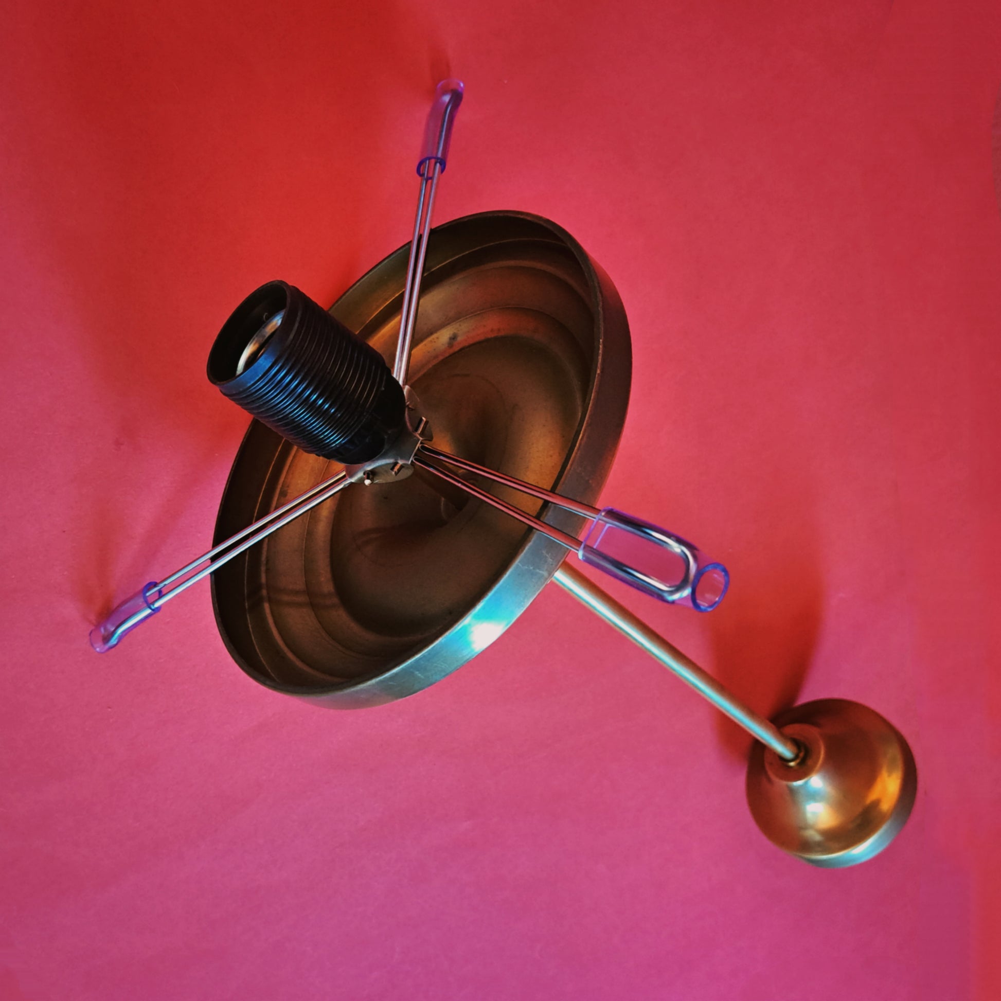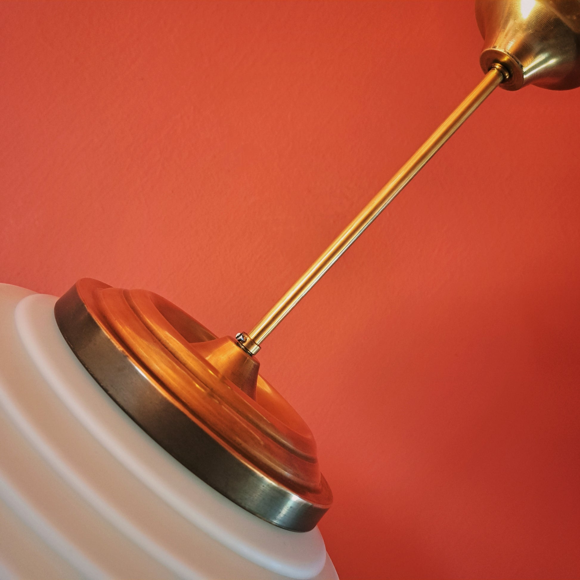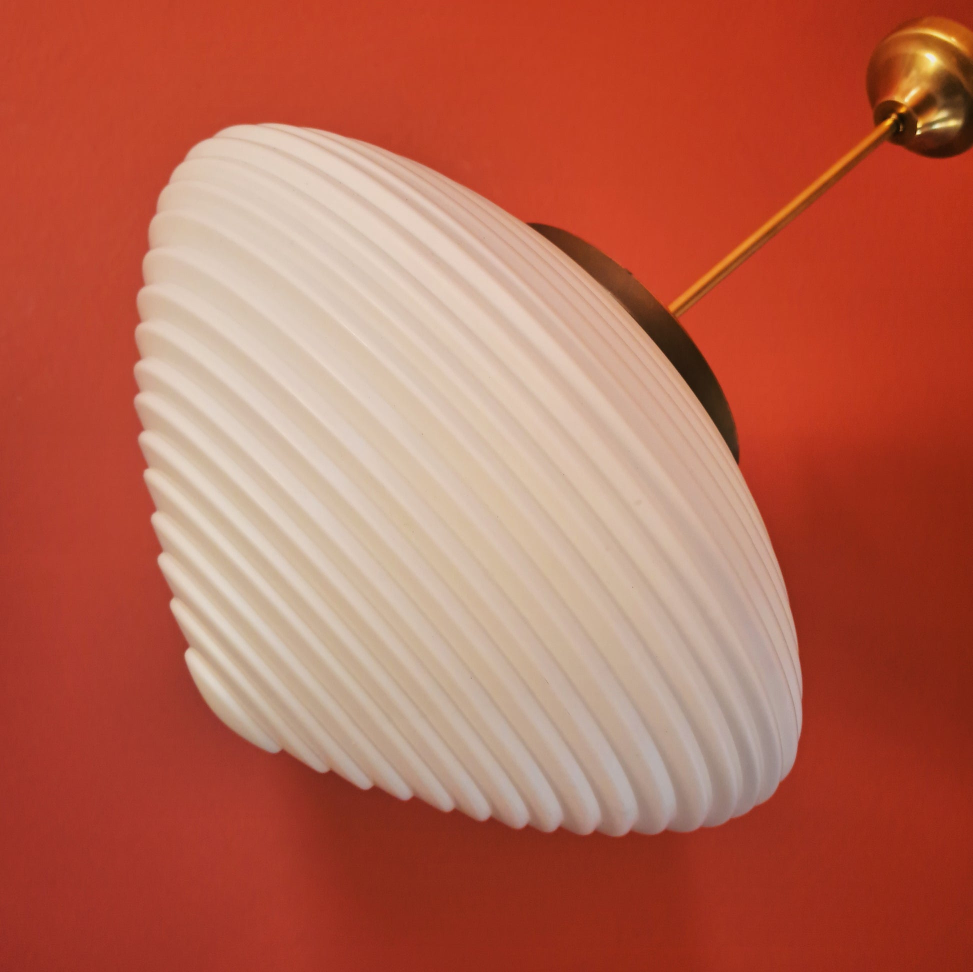 Large Vintage Brass Opaline Milk Glass Pendant Light Brass