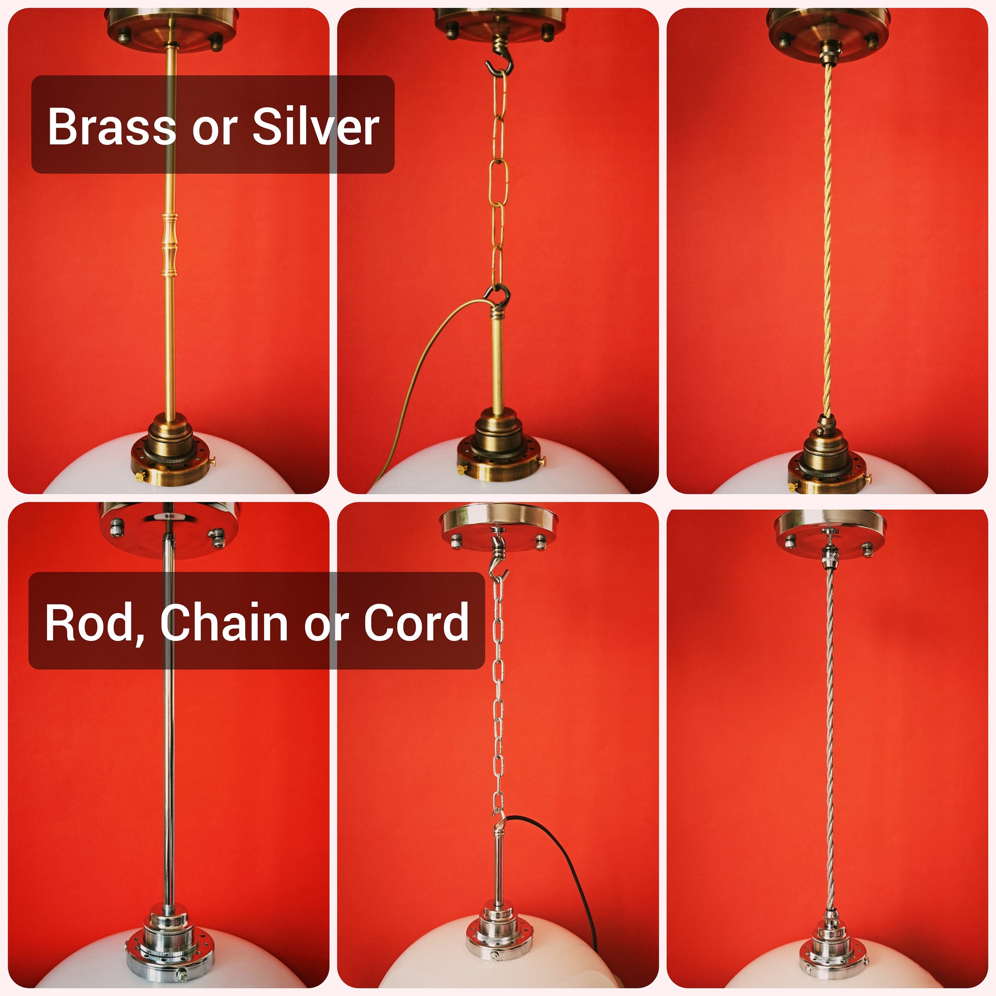 2. Choose rod, hook & chain or fabric cord