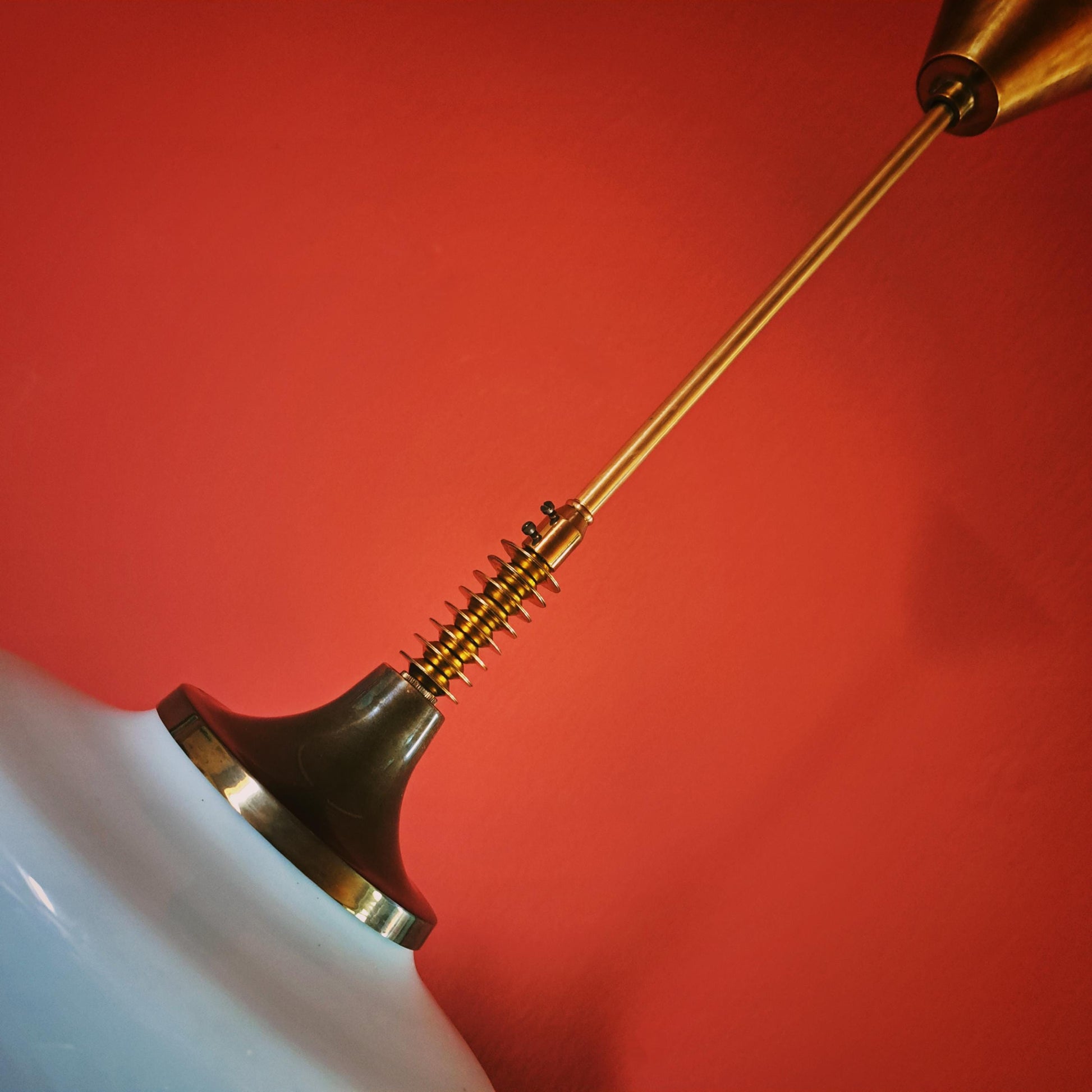 Mid Century Opaline Glass Pendant Light Vintage Brass MULTIPLES AVAILABLE