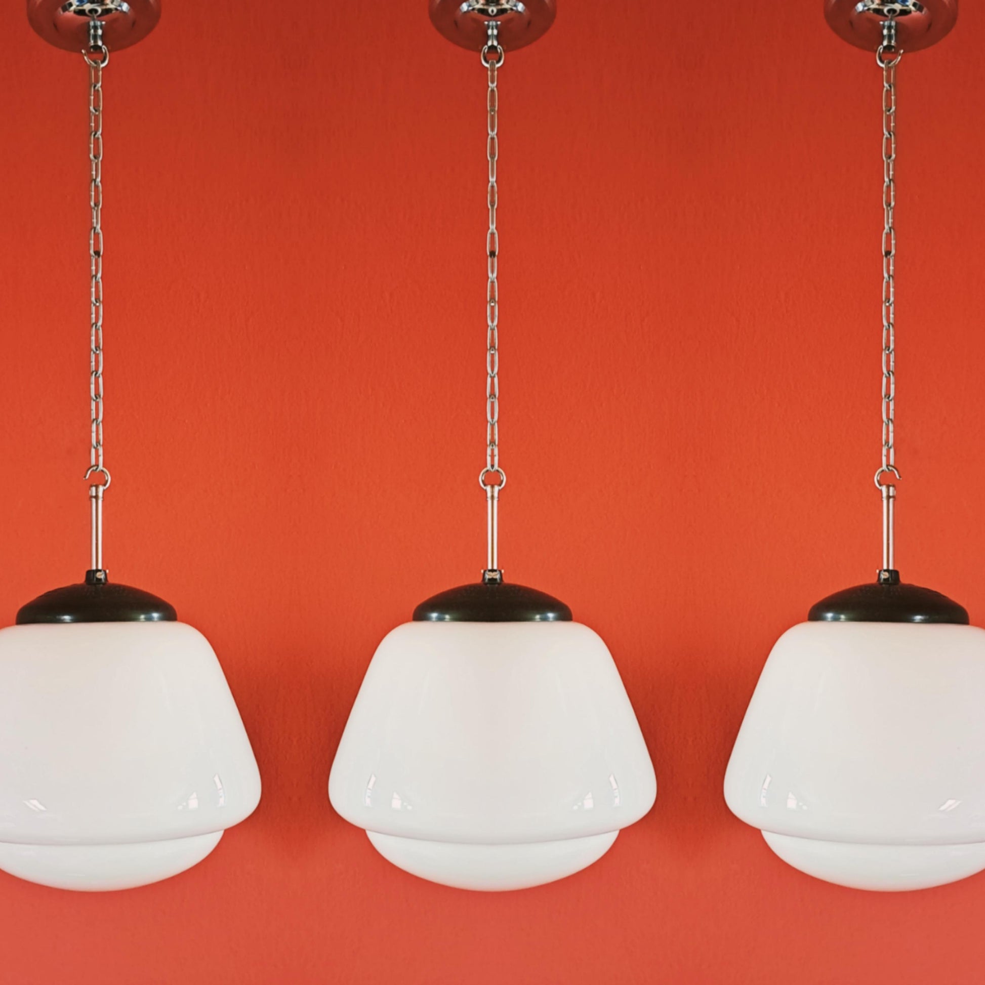 Mid Century Opaline Glass Schoolhouse Pendant Lights MULTIPLES AVAILABLE