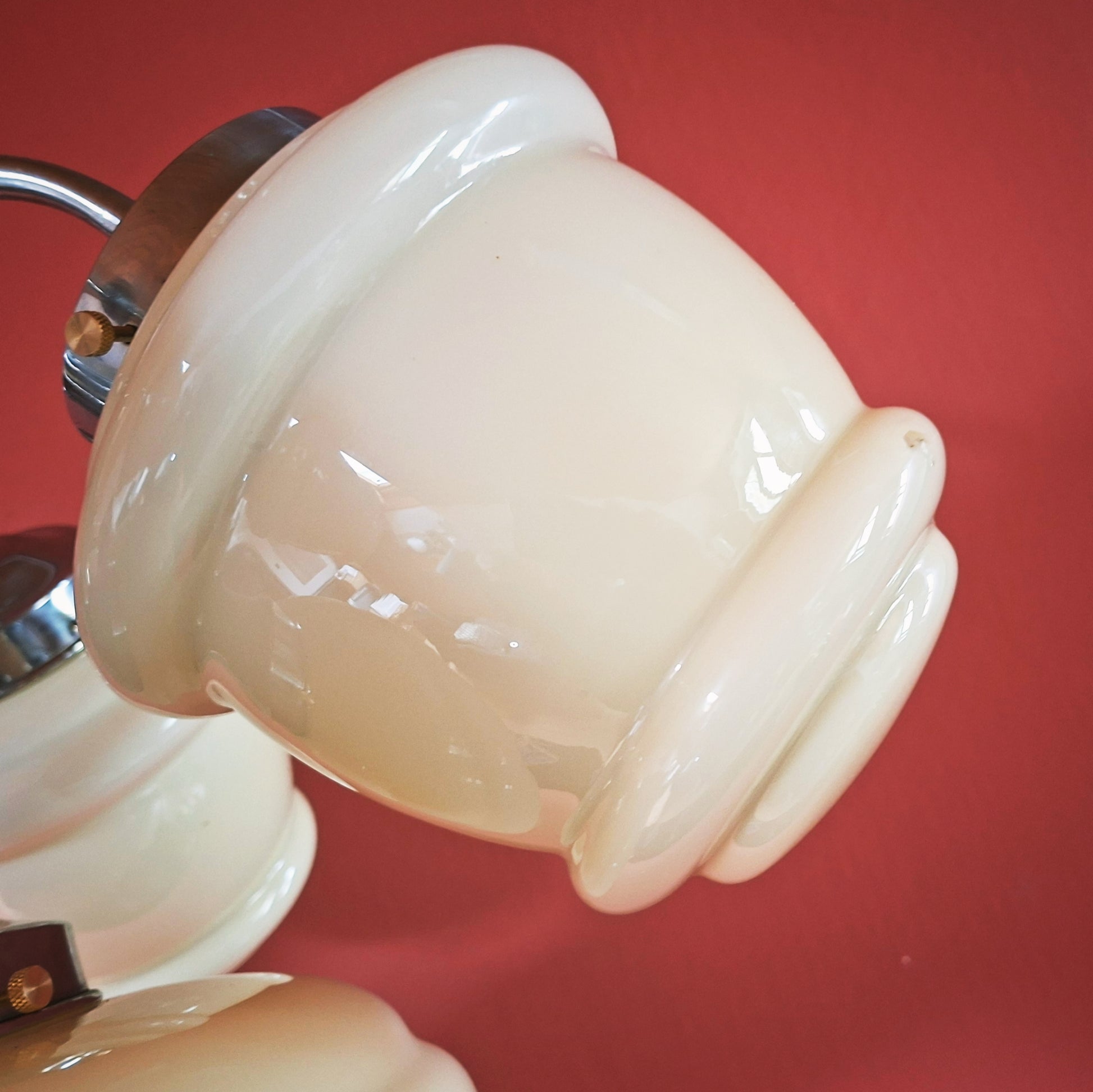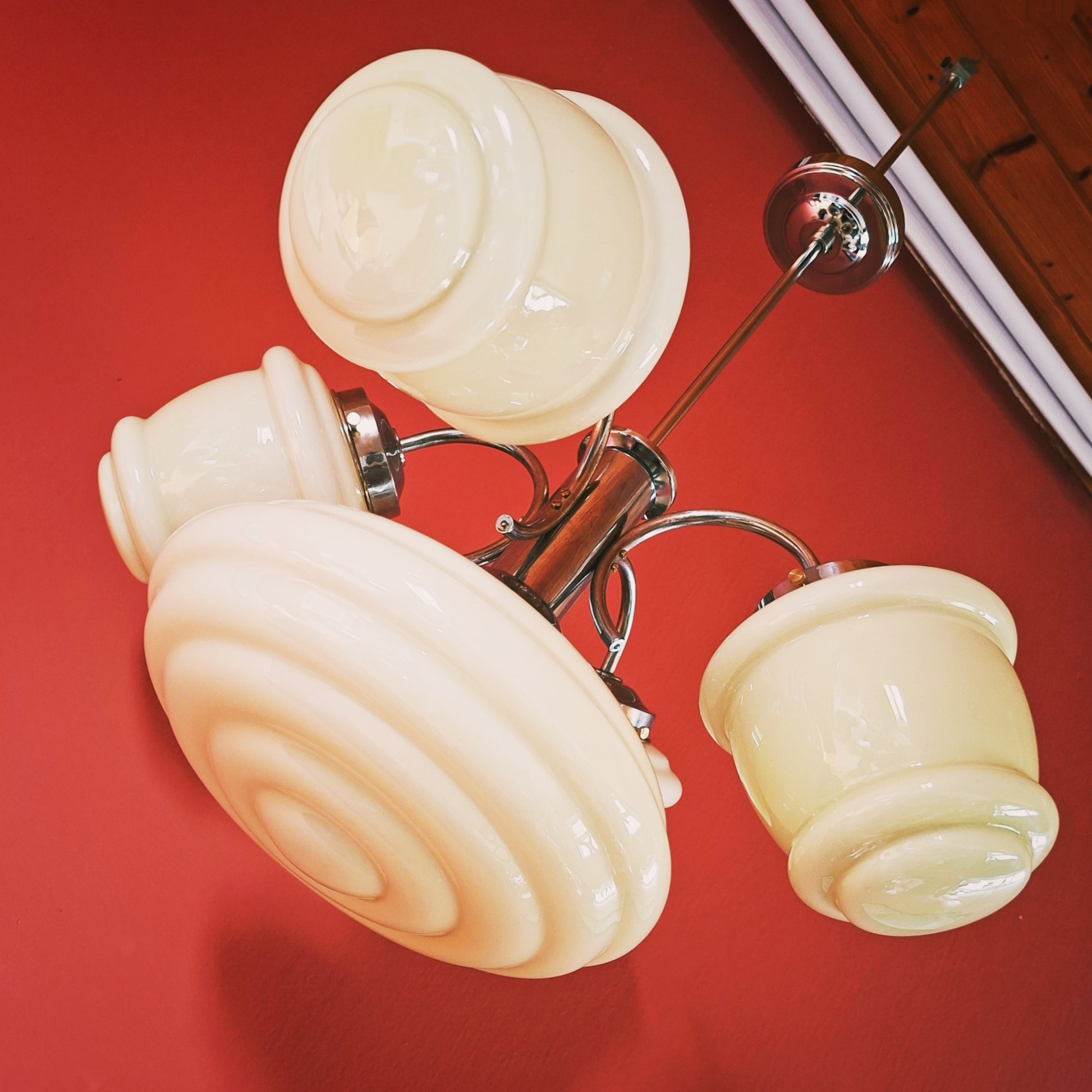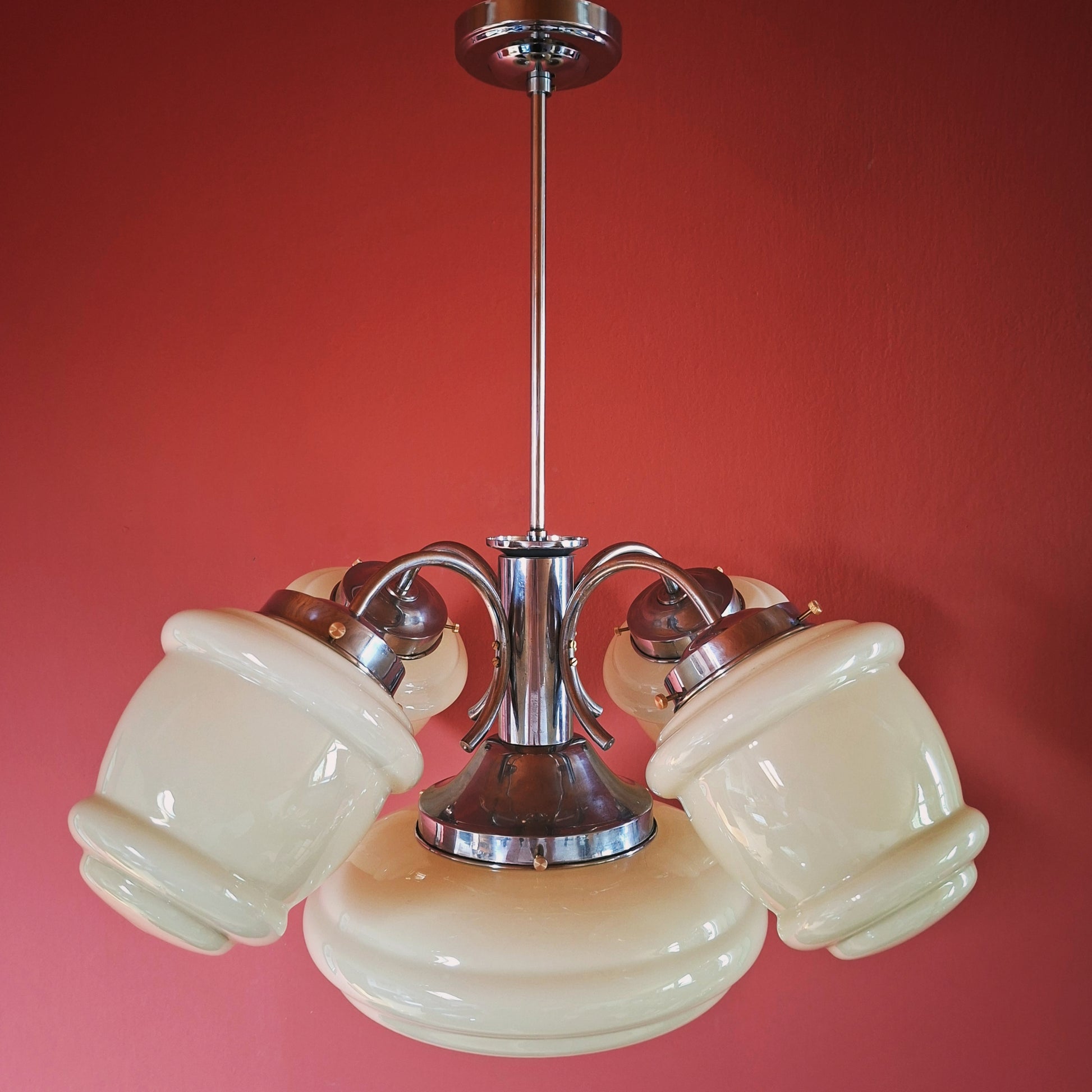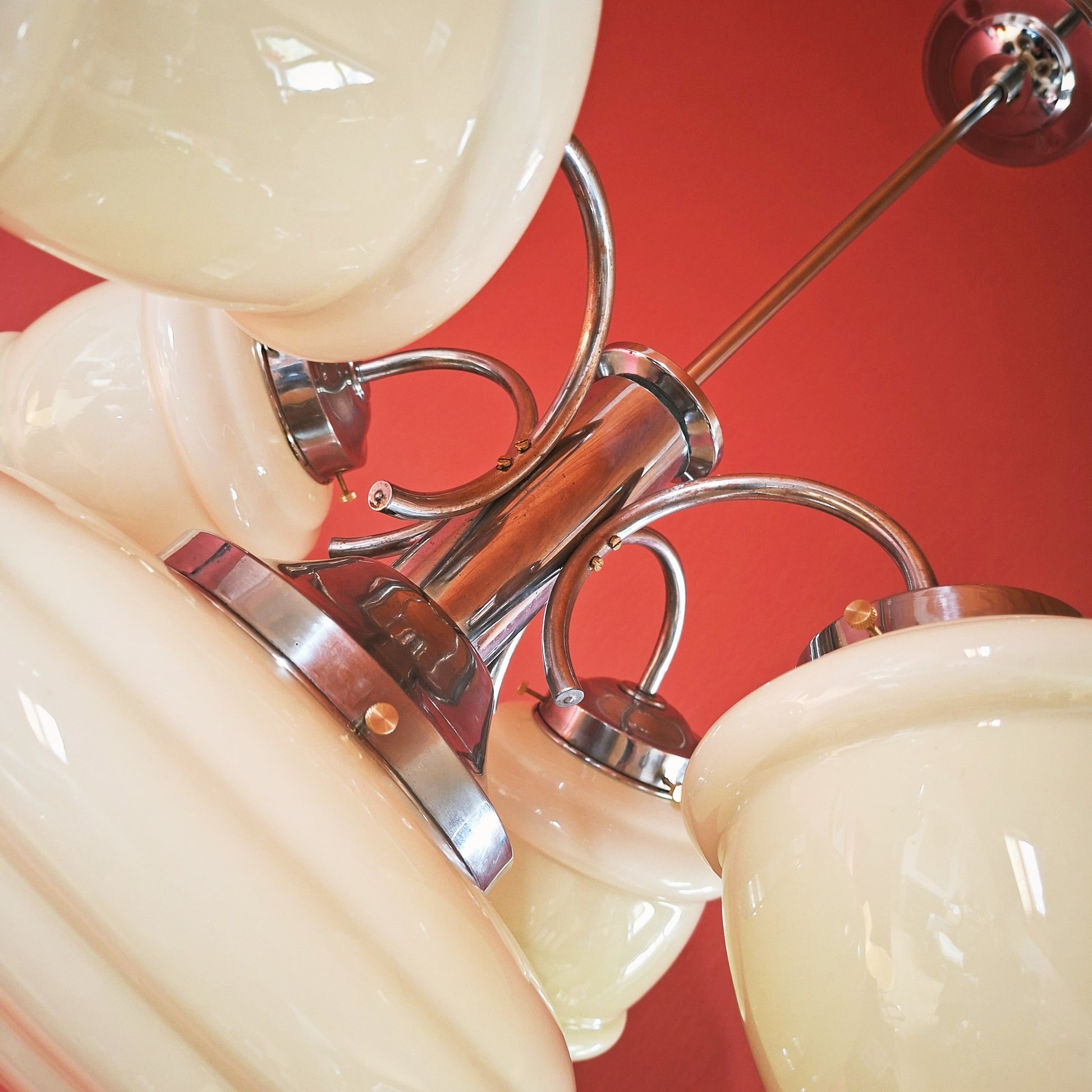 Art Deco Nickel Chrome-Plated Brass Glass Chandelier 1930s