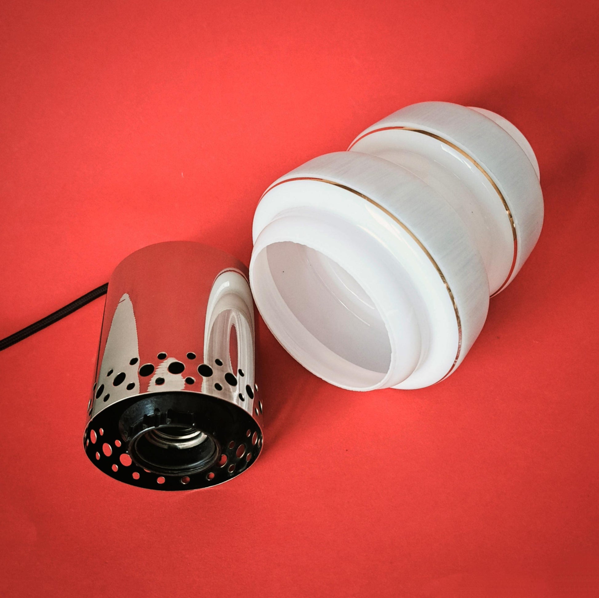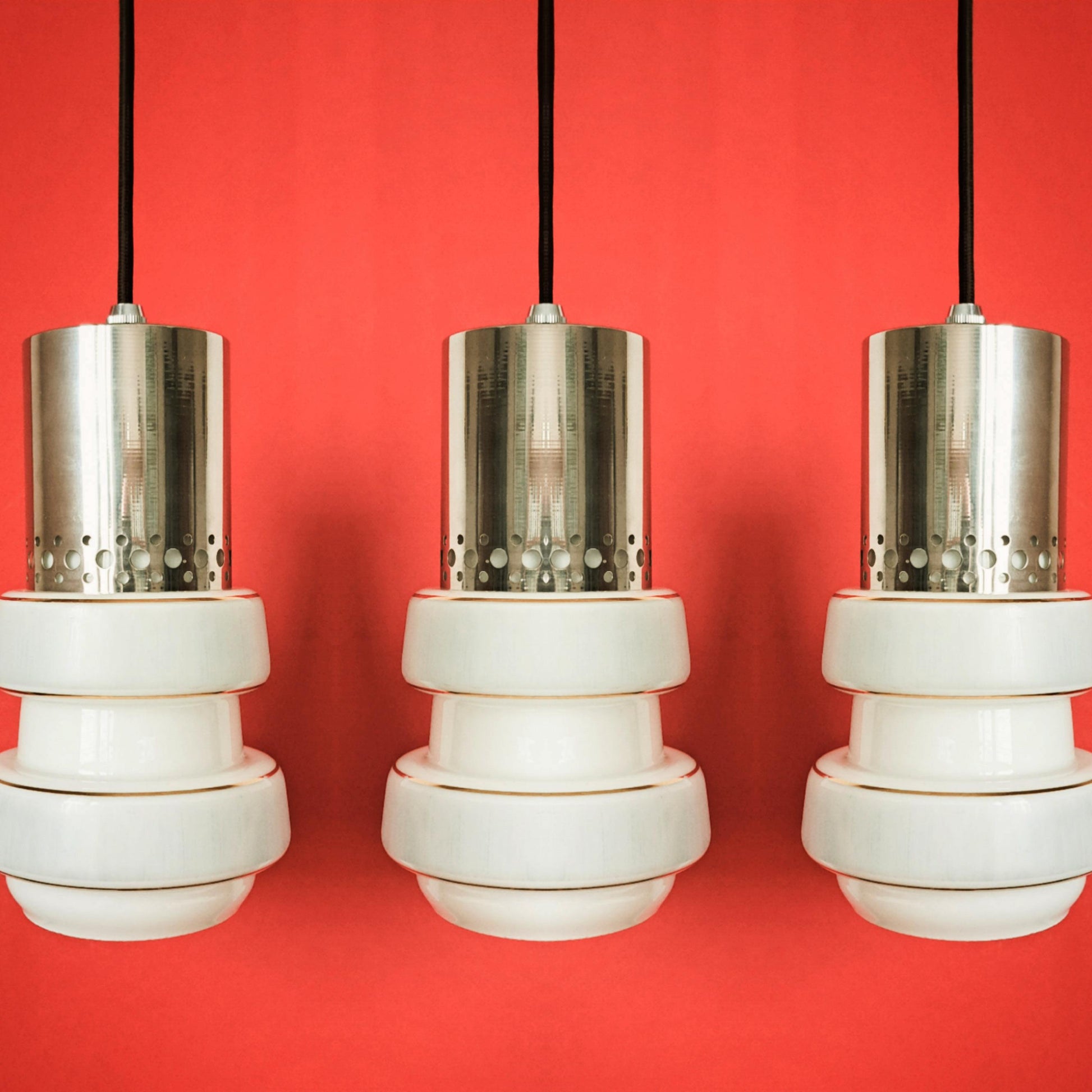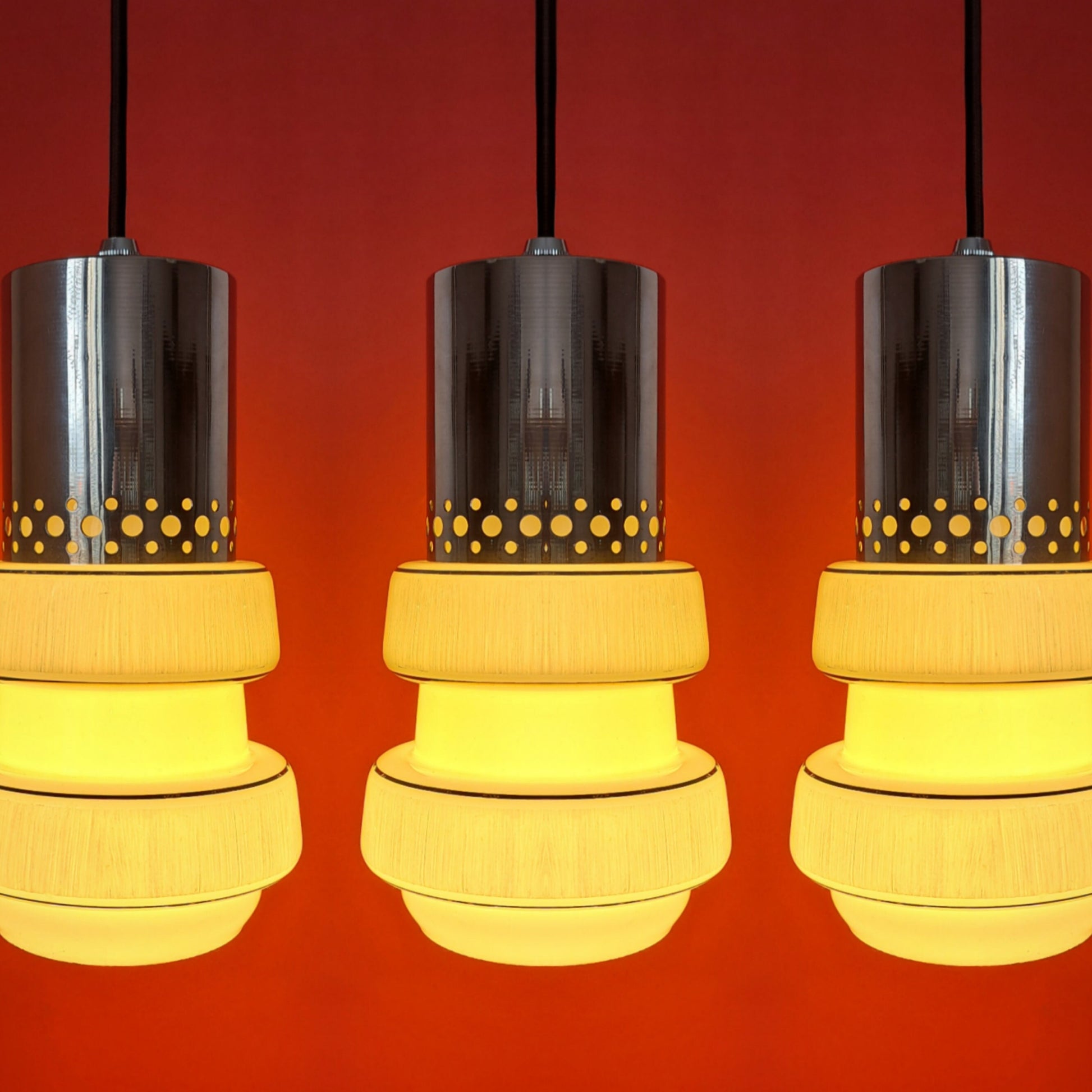 Set of 3 Mid Century Striped Opaline Glass Pendant Lights