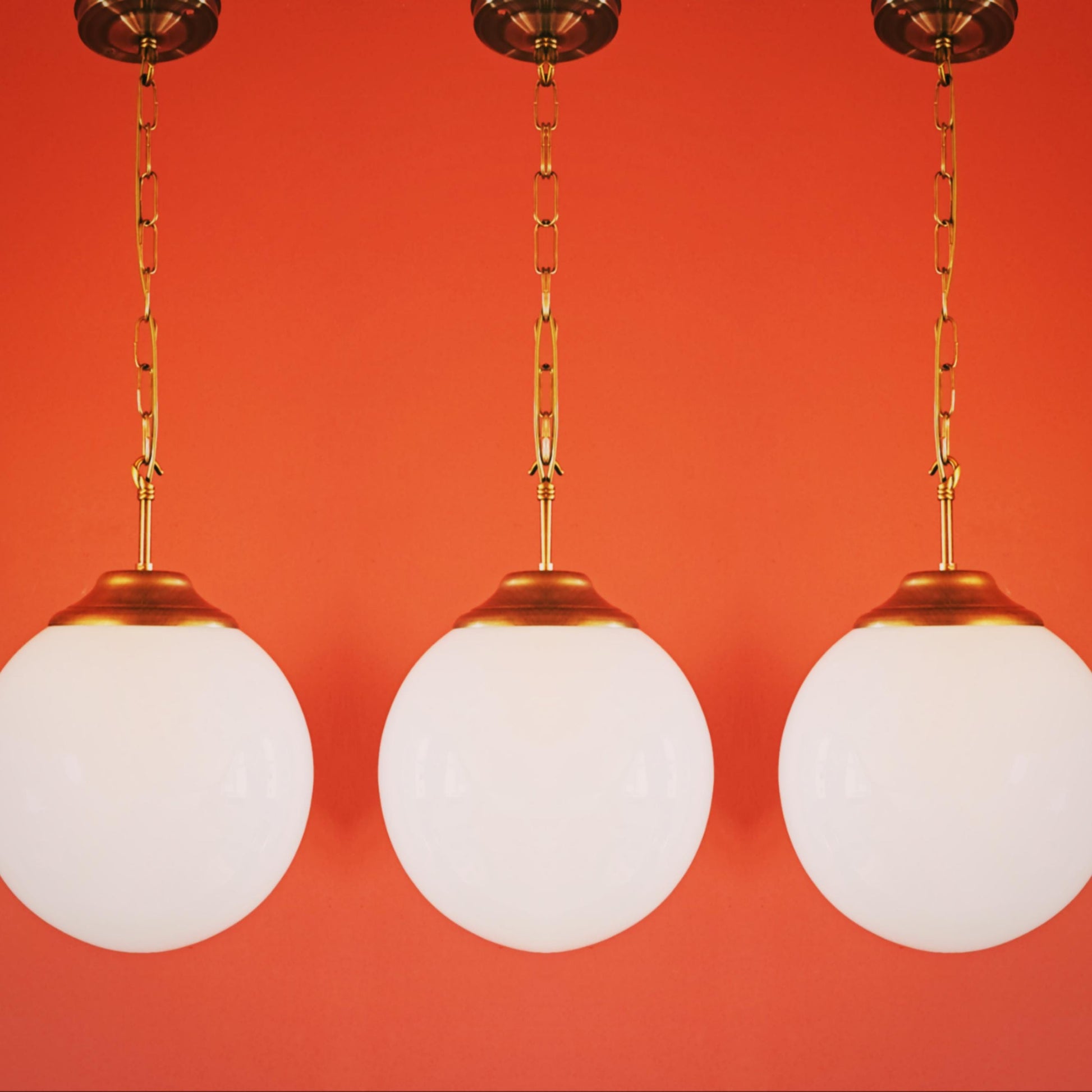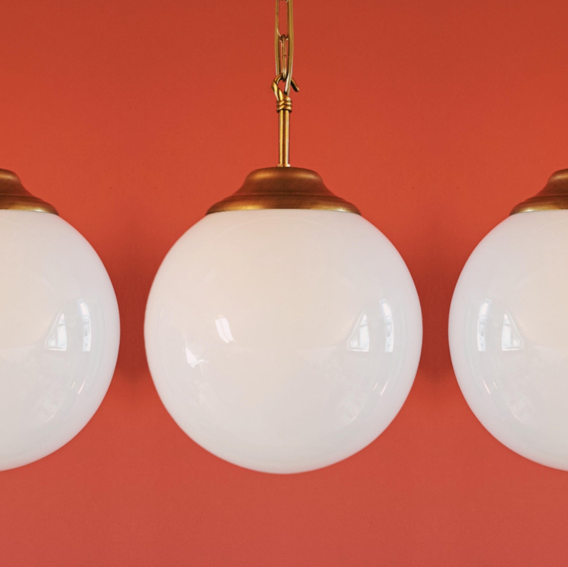 Vintage Brass Opaline Glass Globe Pendant Lights MULTIPLES AVAILABLE
