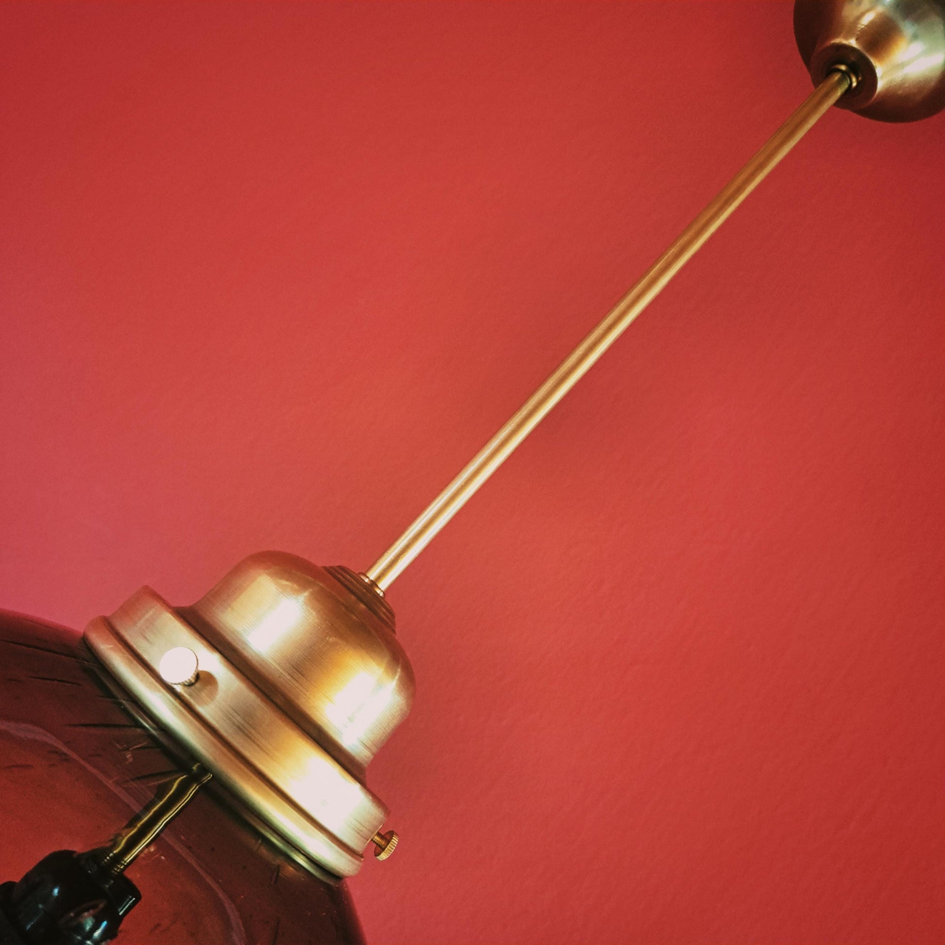 Vintage Dark Glass Globe Pendant Light w/ Brass Fittings
