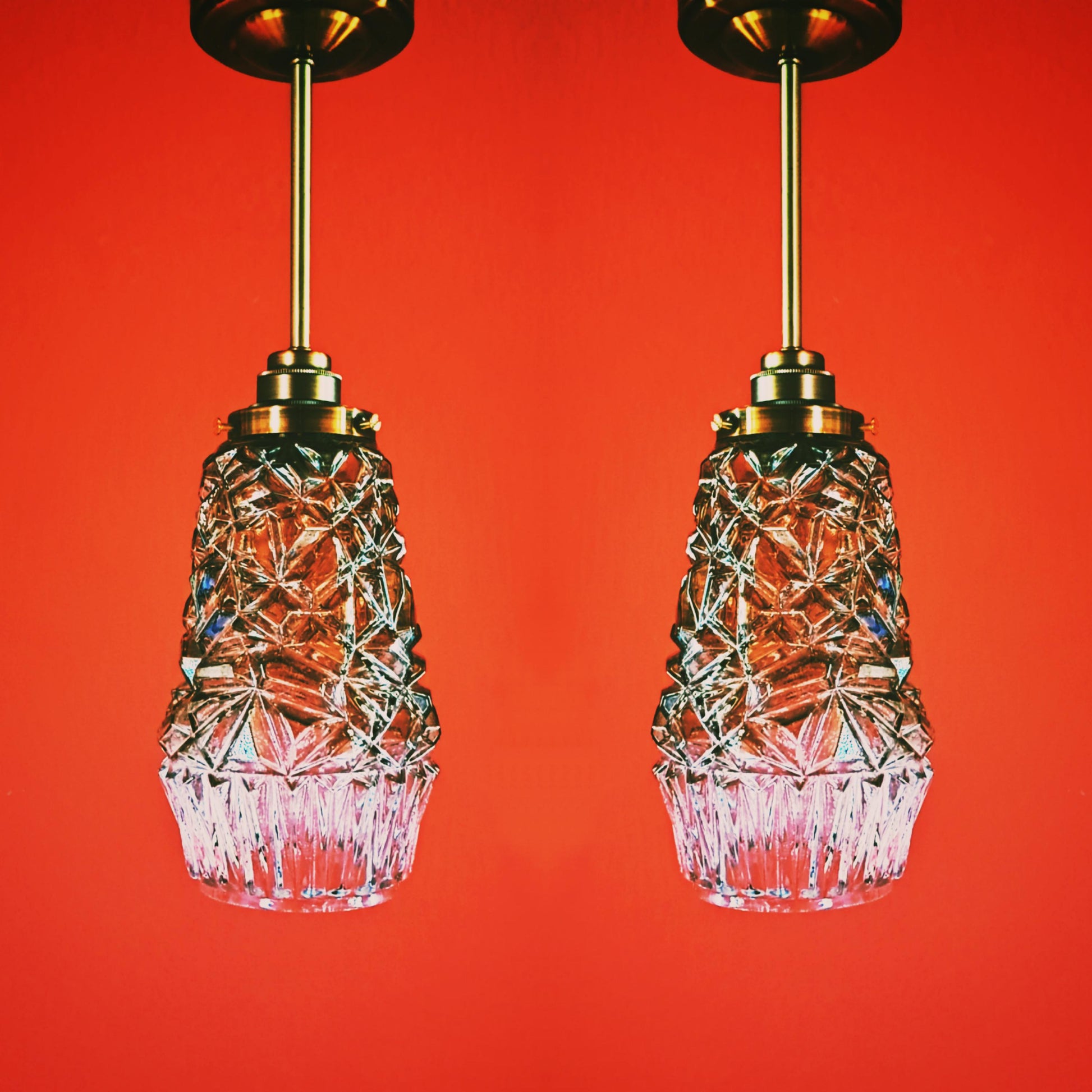 3 x Vintage Crystal Glass Pendant Lights