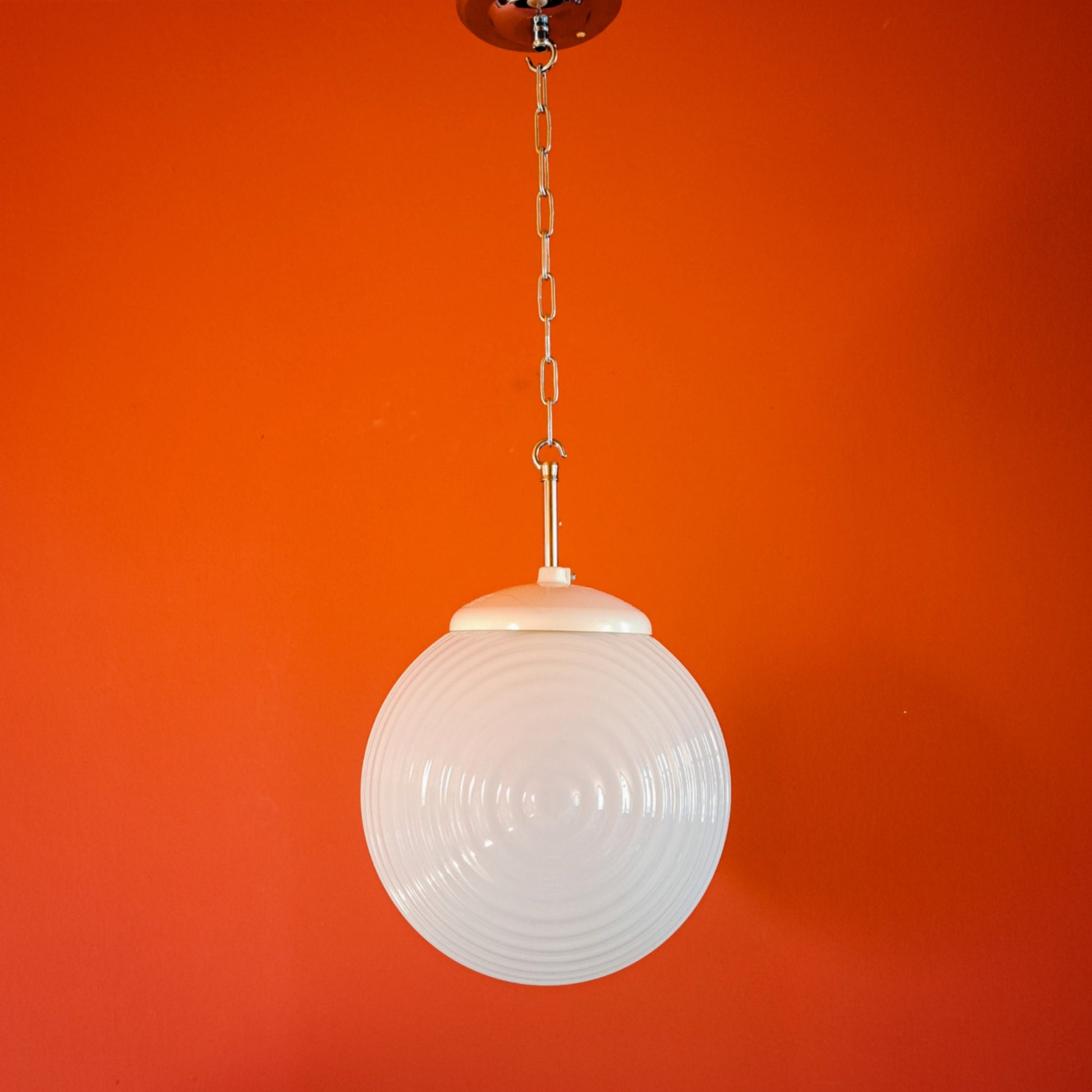Vintage Opaline Glass Pendant Light: Mid-Century Modern Kitchen Lighting